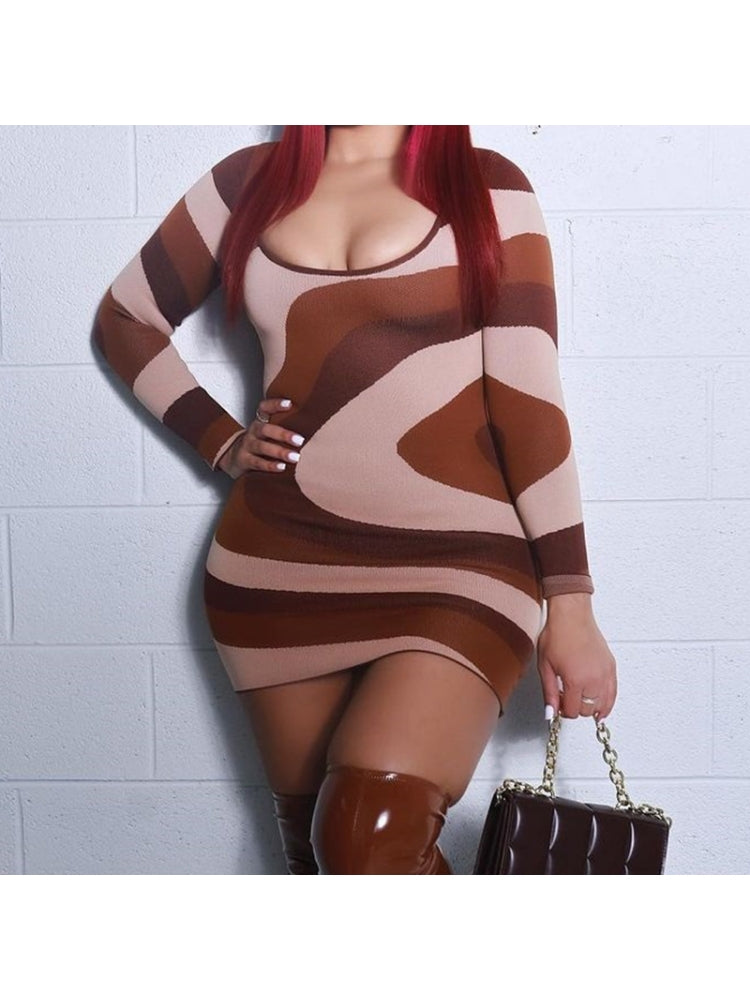 Brown U Neck Dress