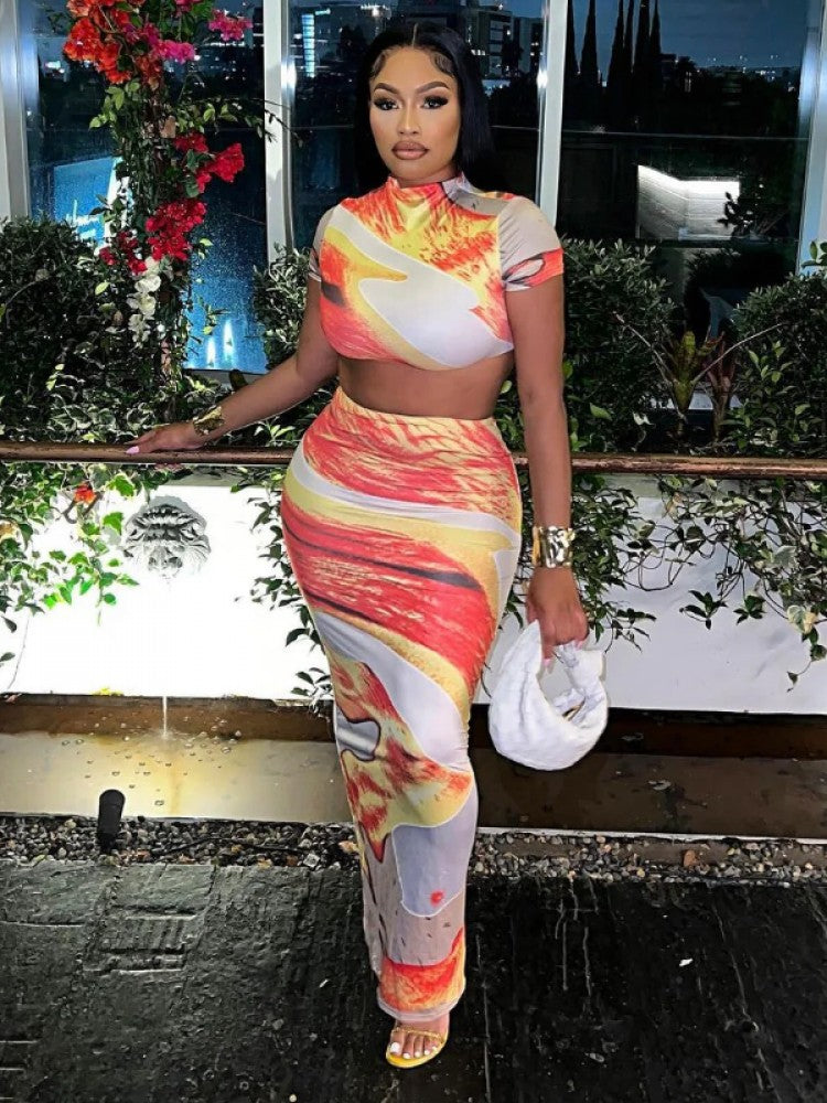 Colorblock Crop Skirt Set