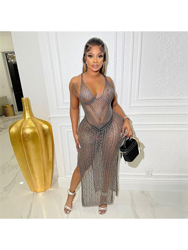 Grey See Through Sleeveless Dress