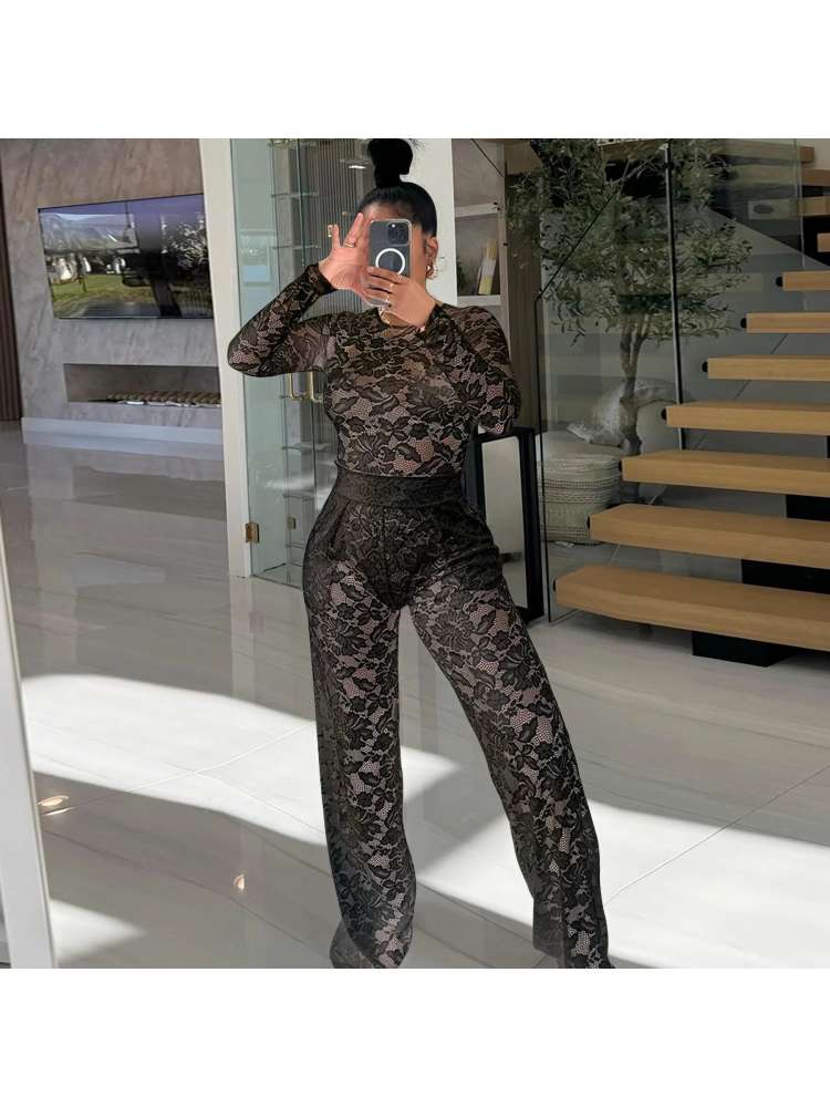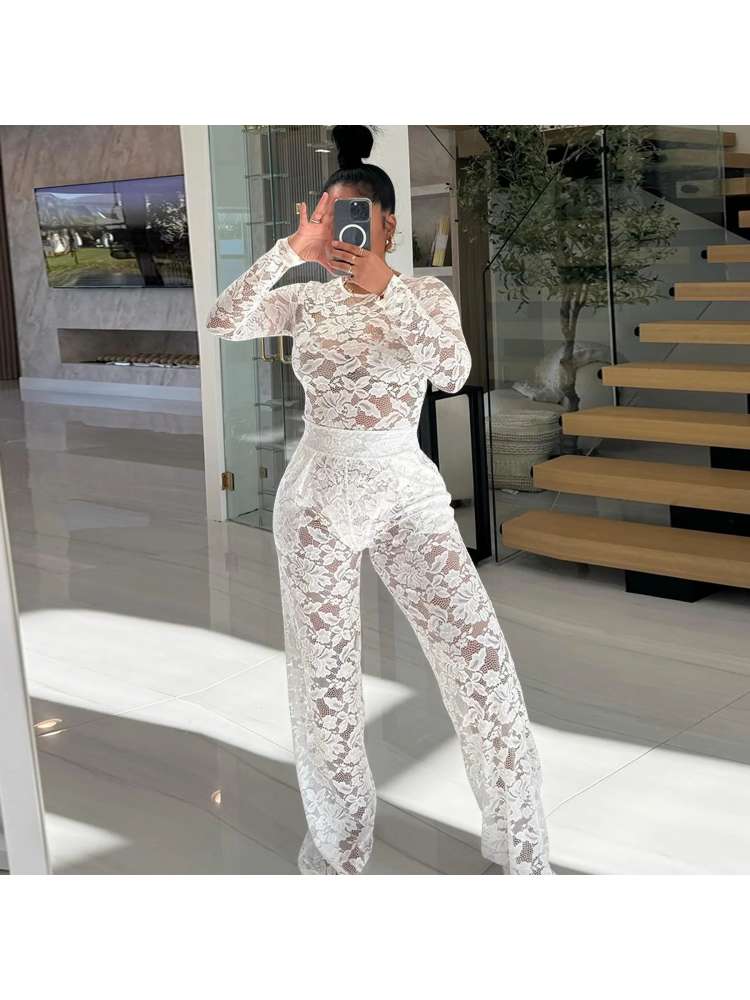 Lace Bodysuit Pants Set