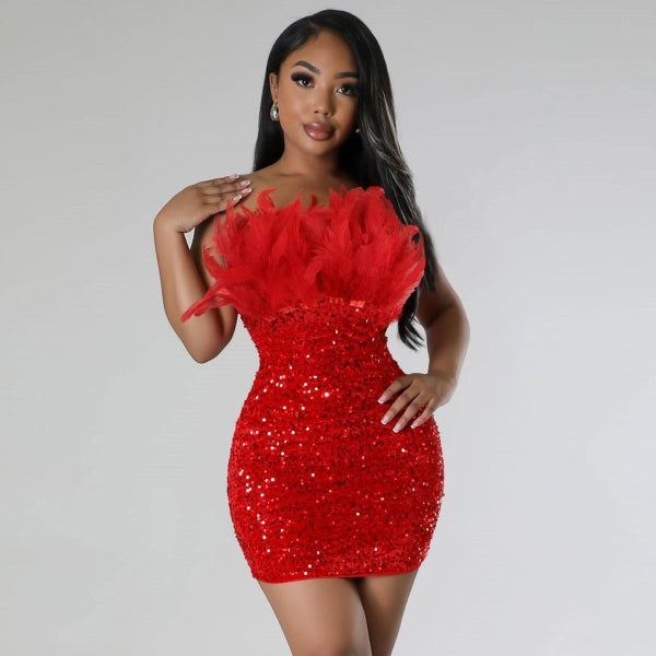 Solid Color Feather Dress